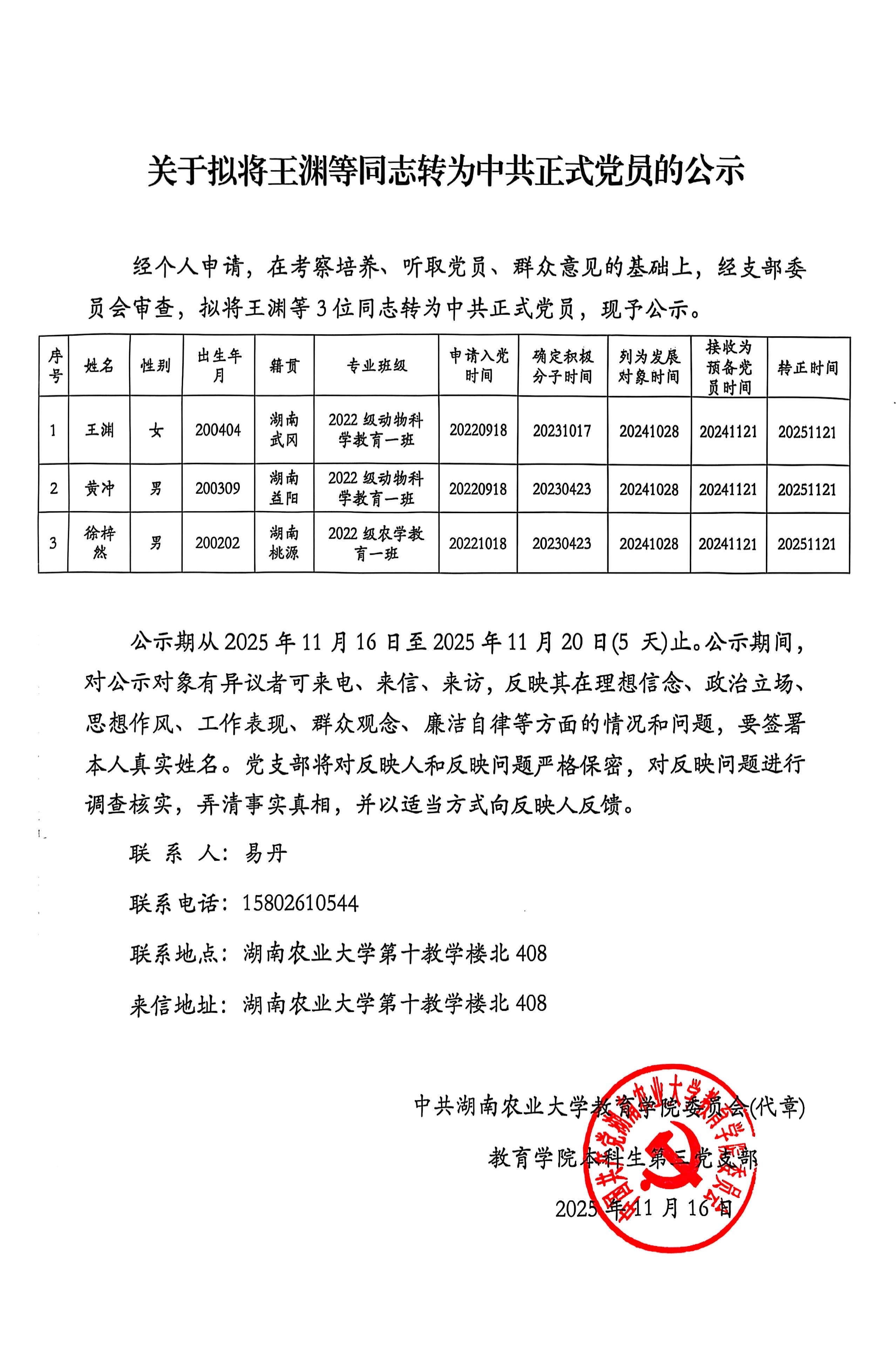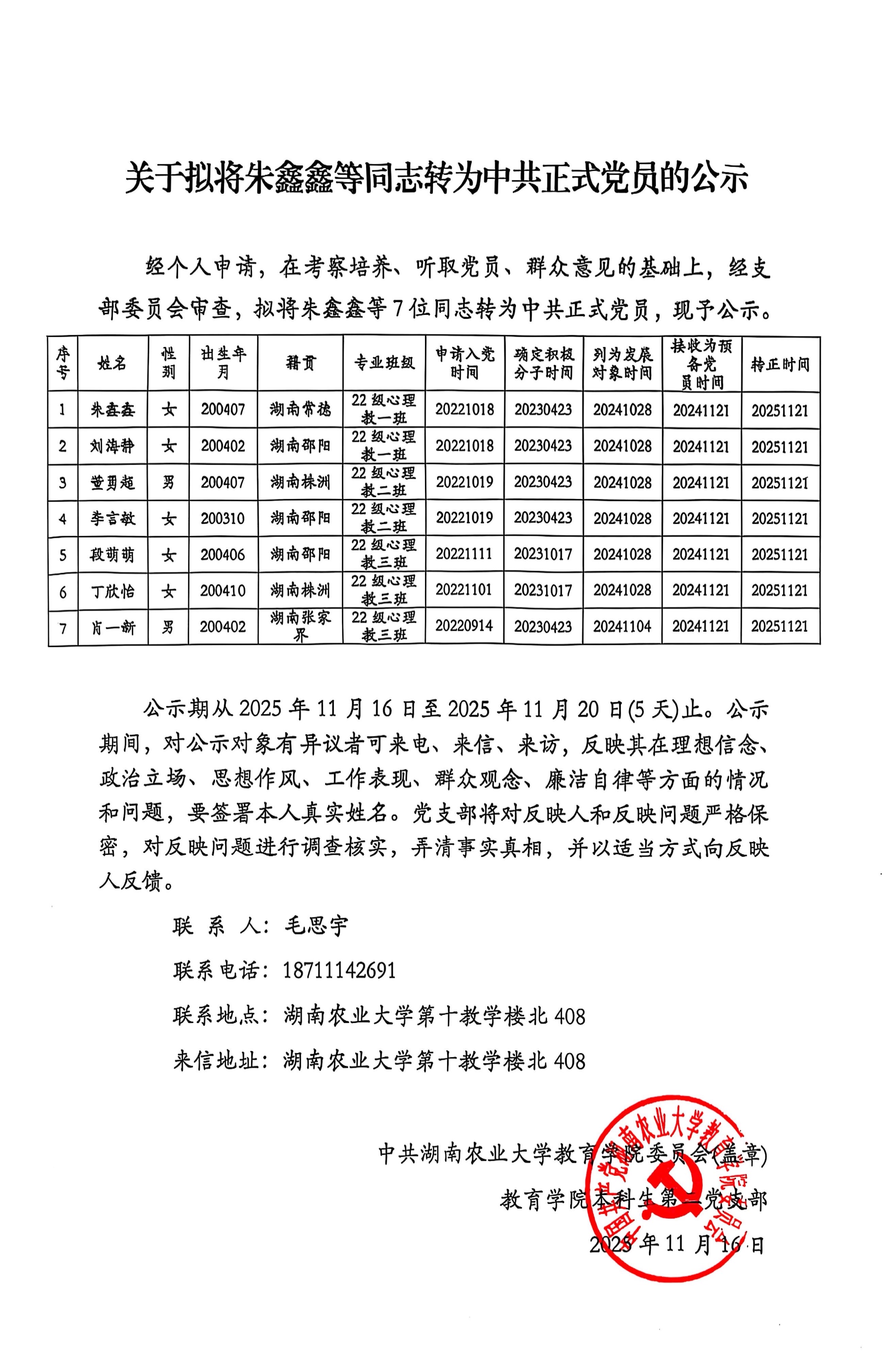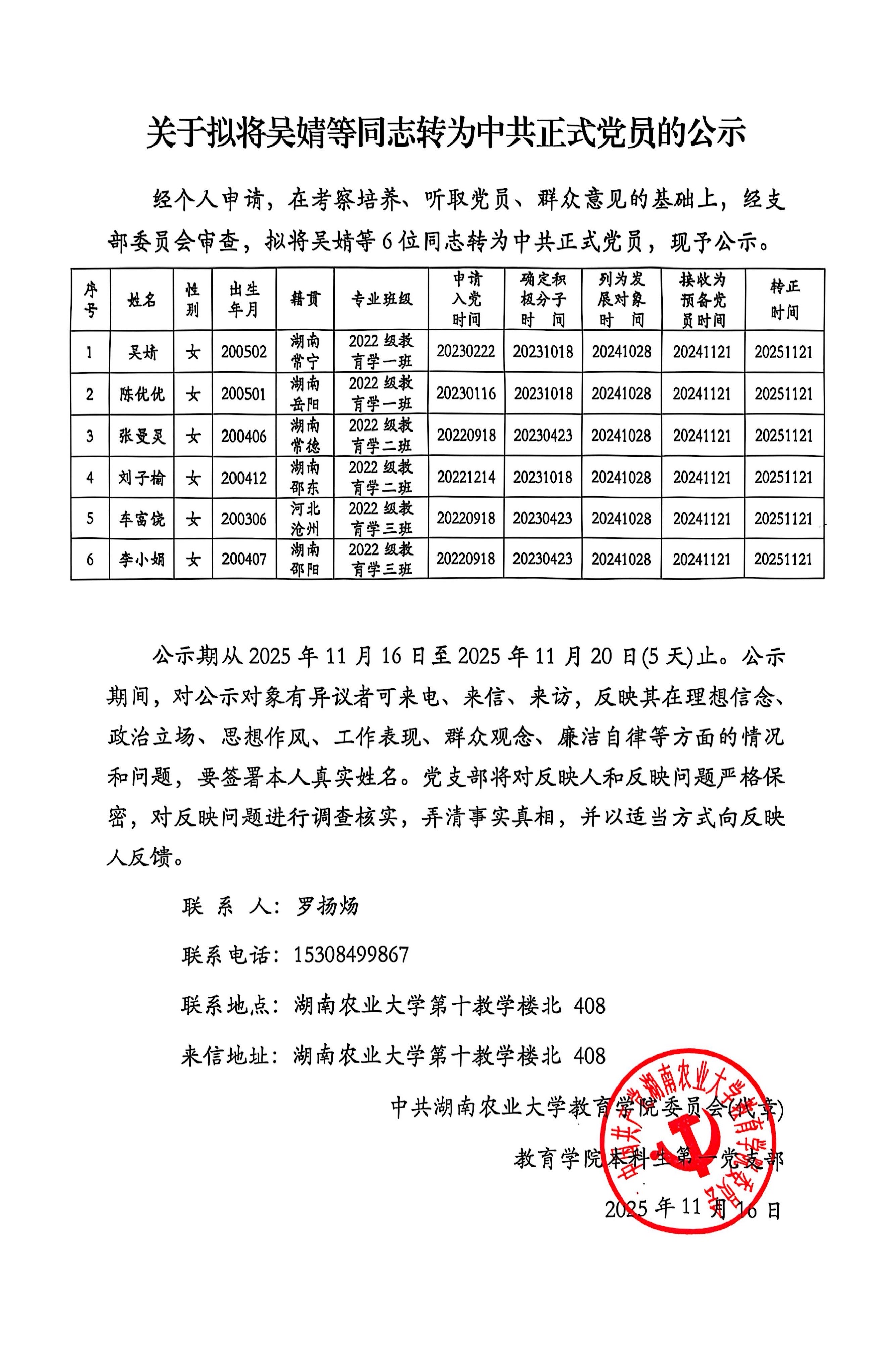 教育学院2025年秋季学期预备党员转正公示