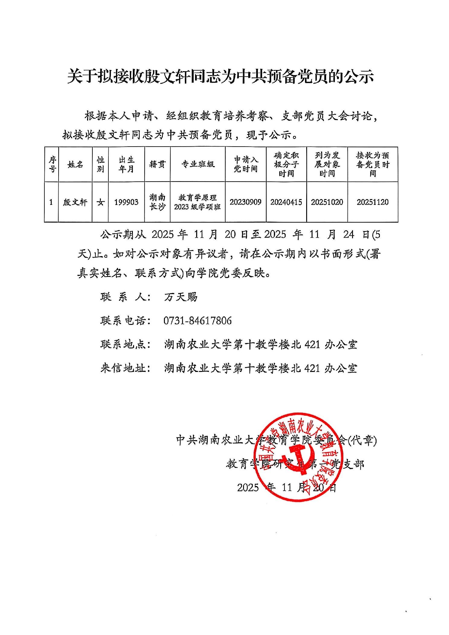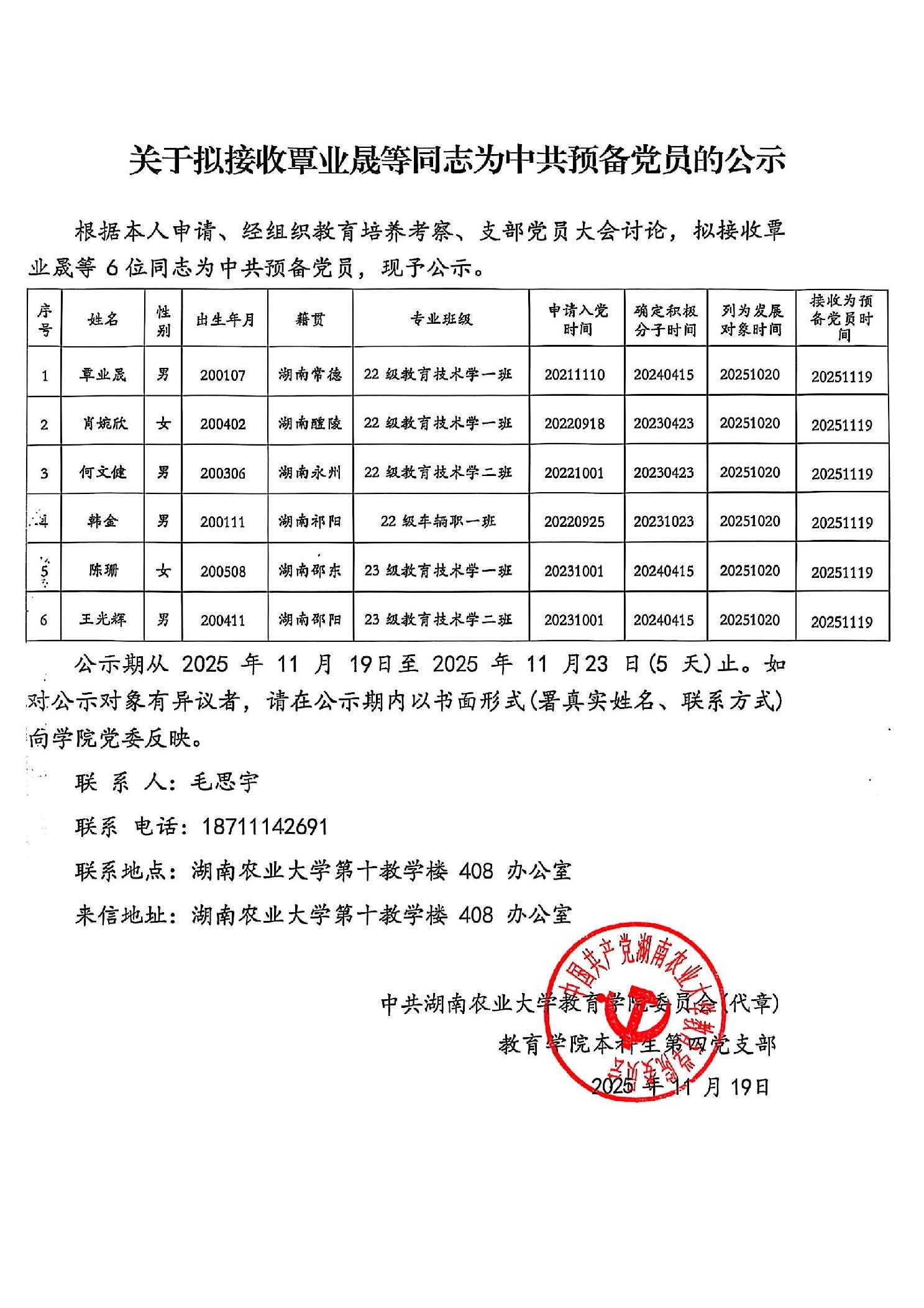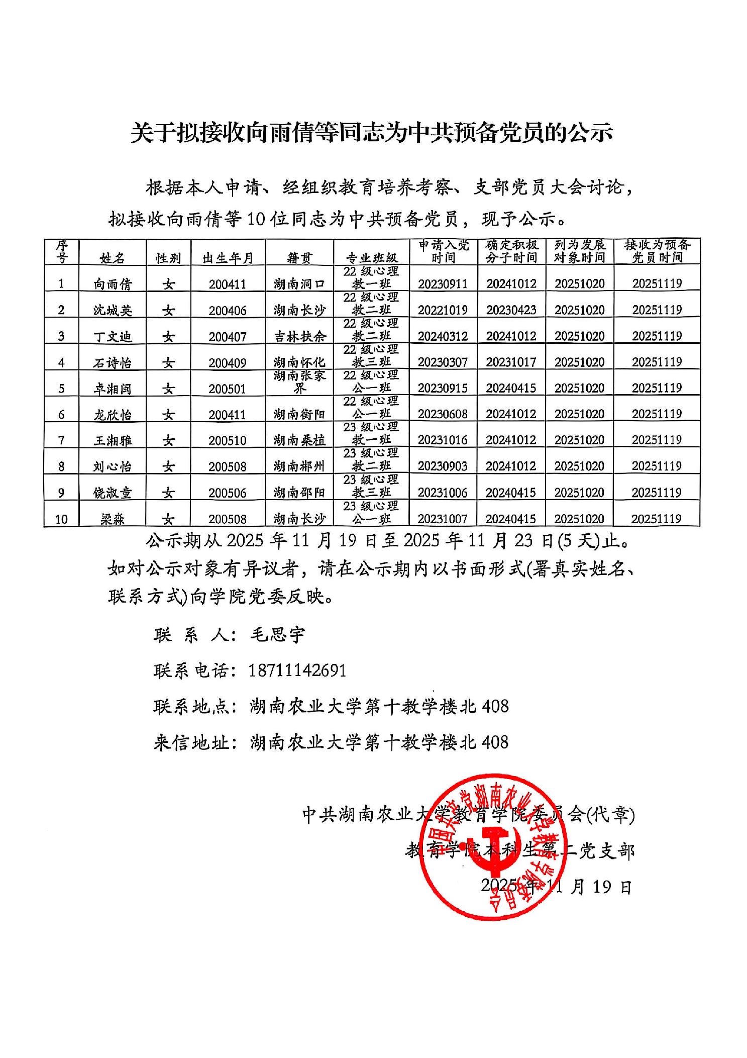 教育学院2025年秋季学期本科生和研究生接收为预备党员的公示