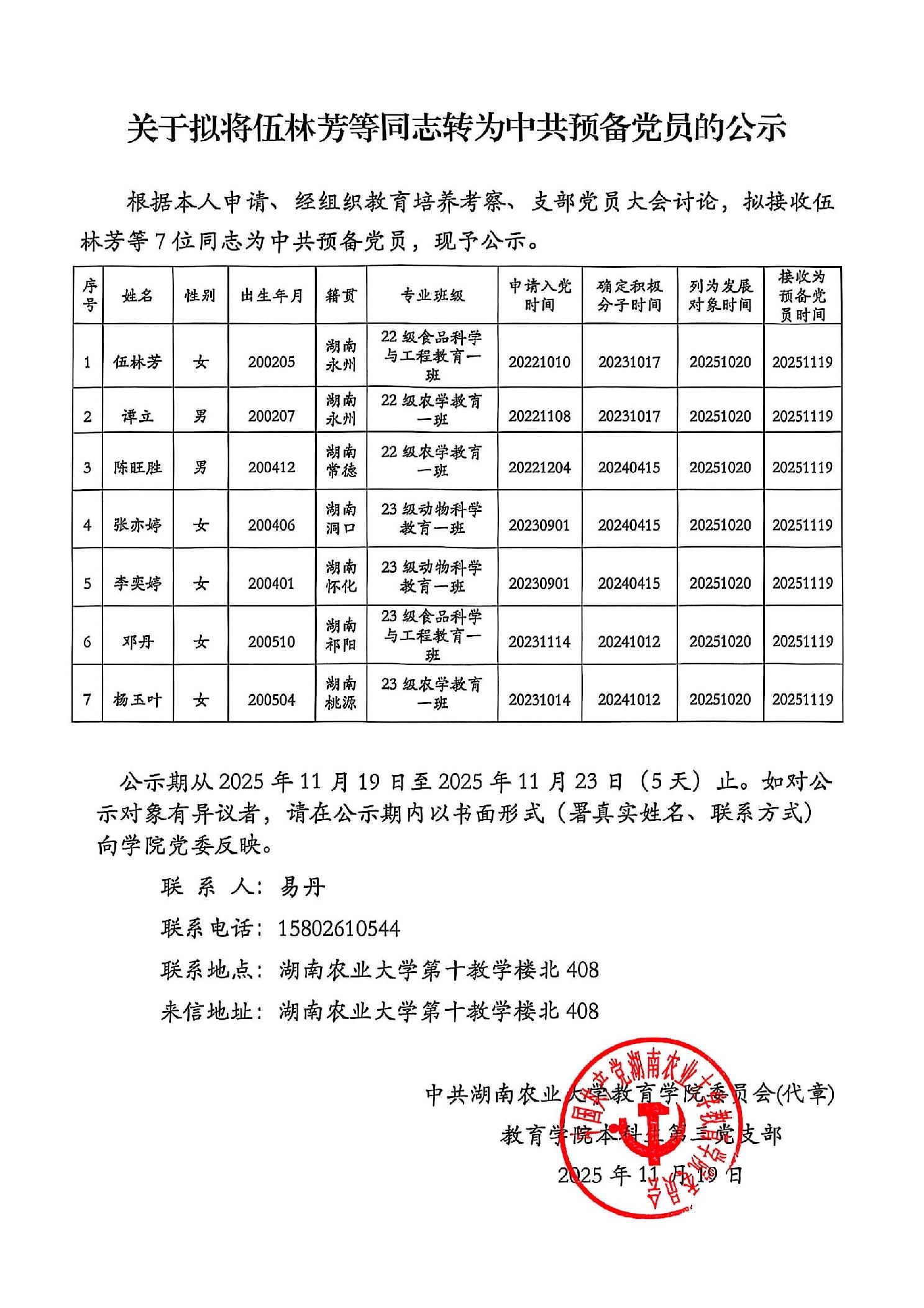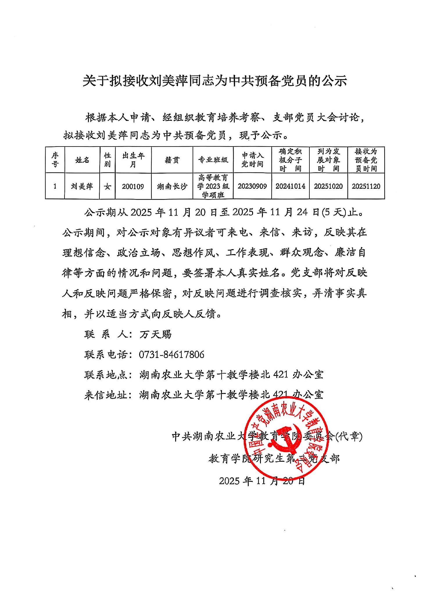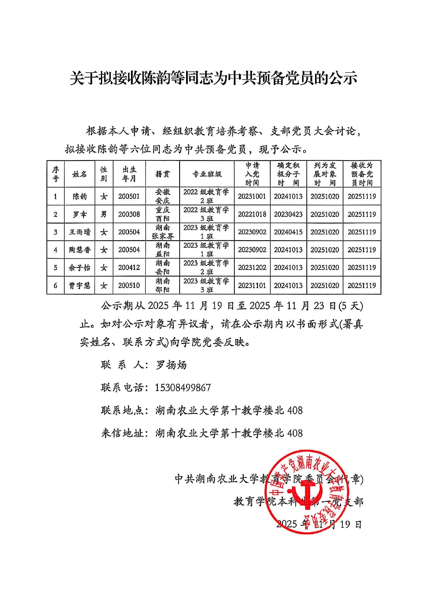 教育学院2025年秋季学期本科生和研究生接收为预备党员的公示