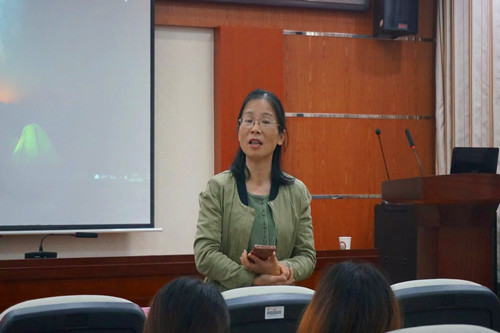 图为张乐琼做交流分享